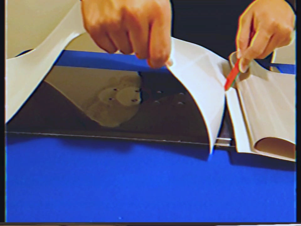 - Fold over one side of your wrap and peel the backing paper away from the vinyl about 1/3 of the length of your board careful not to pop up your Center Hinge