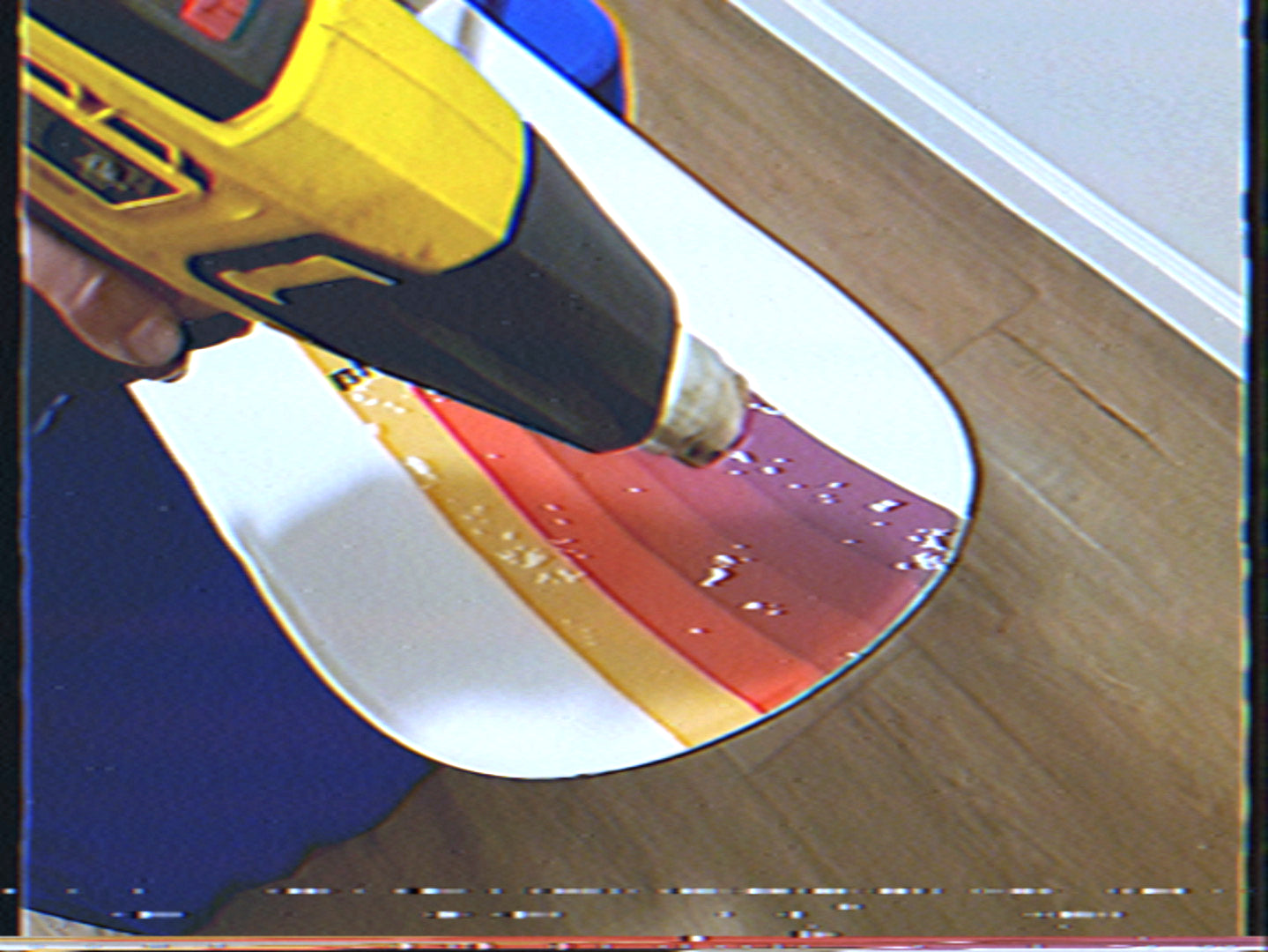 - Taking your heat source, apply a slow constant moving heat along the edges of your board